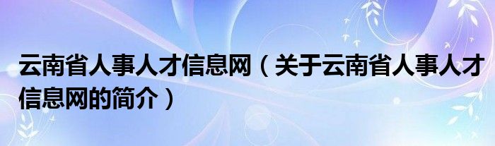 本文關于云南省人事人才信息網的簡介就講解完畢,希望對大家有所幫助。