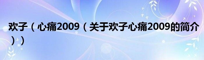 本文關于歡子 心痛2009的簡介就講解完畢,希望對大家有所幫助。