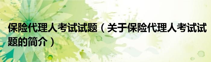 大家好,保險代理人考試試題,關于保險代理人考試試題的簡介很多人還不知道,現在讓我們一起來看看吧!