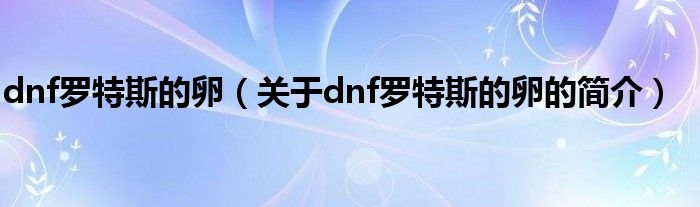 本文關(guān)于dnf羅特斯的卵的簡(jiǎn)介就講解完畢,希望對(duì)大家有所幫助。