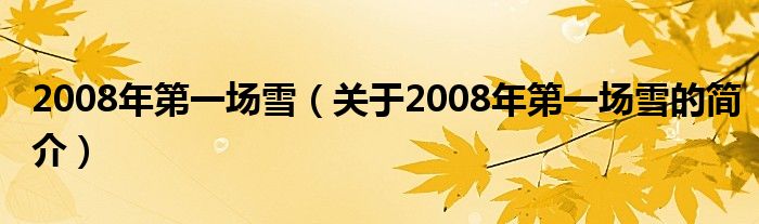 大家好,2008年第一場雪,關(guān)于2008年第一場雪的簡介很多人還不知道,現(xiàn)在讓我們一起來看看吧!