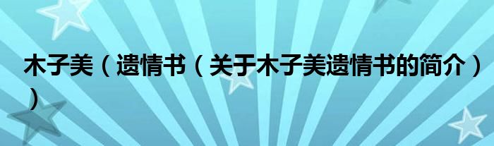 本文關(guān)于木子美 遺情書的簡(jiǎn)介就講解完畢,希望對(duì)大家有所幫助。