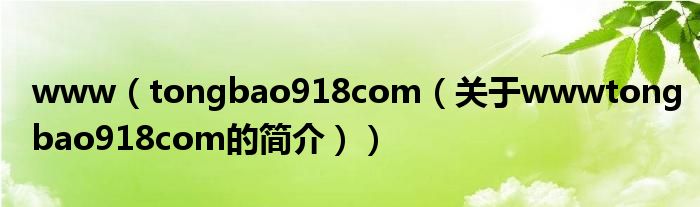 本文關于www tongbao918 com的簡介就講解完畢,希望對大家有所幫助。