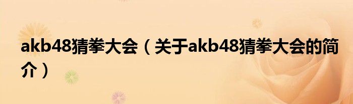本文關(guān)于akb48猜拳大會的簡介就講解完畢,希望對大家有所幫助。