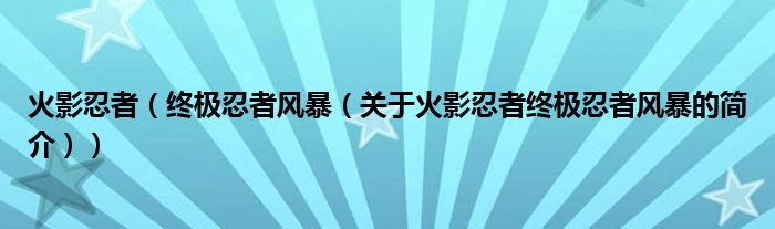 本文關(guān)于火影忍者 終極忍者風(fēng)暴的簡(jiǎn)介就講解完畢,希望對(duì)大家有所幫助。
