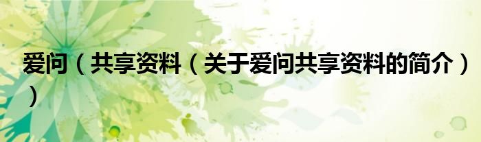 本文關于愛問 共享資料的簡介就講解完畢,希望對大家有所幫助。