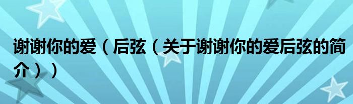 大家好,謝謝你的愛 后弦,關于謝謝你的愛 后弦的簡介很多人還不知道,現在讓我們一起來看看吧!