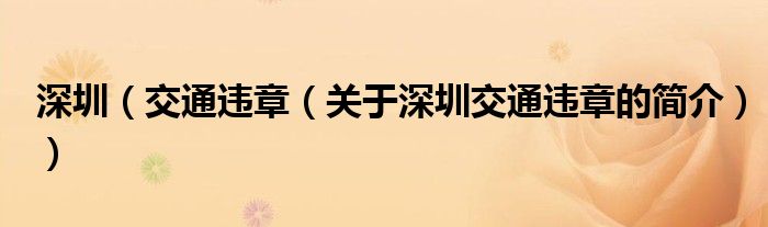 大家好,深圳 交通違章,關于深圳 交通違章的簡介很多人還不知道,現在讓我們一起來看看吧!