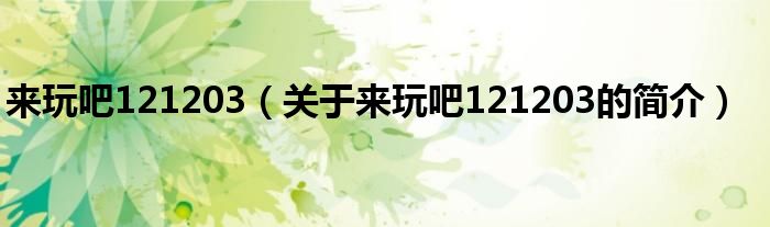 本文關(guān)于來玩吧121203的簡介就講解完畢,希望對(duì)大家有所幫助。