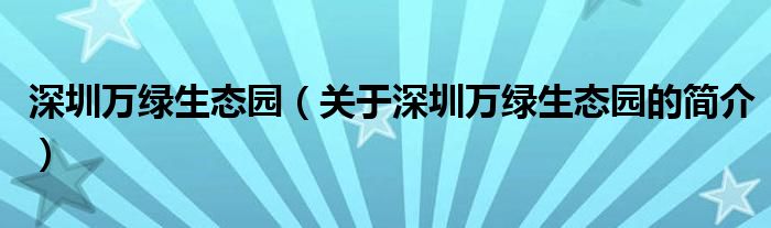 本文關于深圳萬綠生態園的簡介就講解完畢,希望對大家有所幫助。