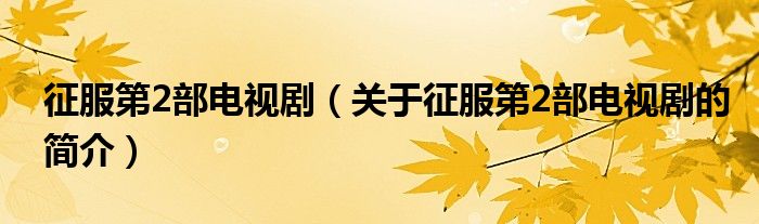 大家好,征服第2部電視劇,關于征服第2部電視劇的簡介很多人還不知道,現在讓我們一起來看看吧!