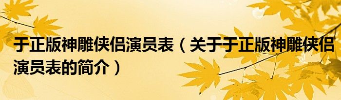本文關(guān)于于正版神雕俠侶演員表的簡(jiǎn)介就講解完畢,希望對(duì)大家有所幫助。
