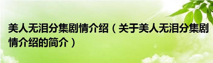 本文關(guān)于美人無淚分集劇情介紹的簡(jiǎn)介就講解完畢,希望對(duì)大家有所幫助。
