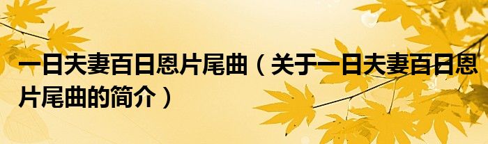 本文關(guān)于一日夫妻百日恩片尾曲的簡(jiǎn)介就講解完畢,希望對(duì)大家有所幫助。