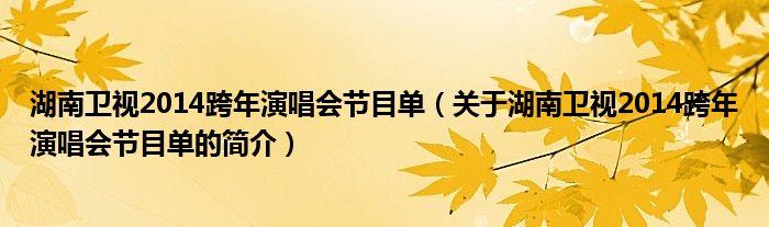 本文關(guān)于湖南衛(wèi)視2014跨年演唱會(huì)節(jié)目單的簡(jiǎn)介就講解完畢,希望對(duì)大家有所幫助。