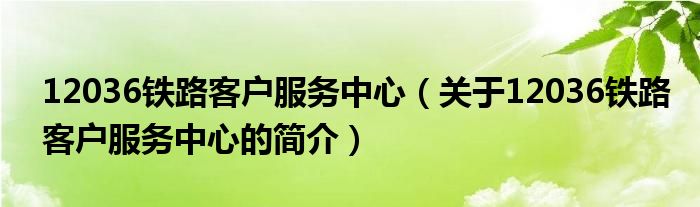 本文關于12036鐵路客戶服務中心的簡介就講解完畢,希望對大家有所幫助。