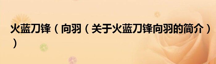 本文關于火藍刀鋒 向羽的簡介就講解完畢,希望對大家有所幫助。