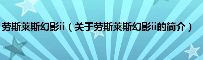 本文關于勞斯萊斯幻影ii的簡介就講解完畢,希望對大家有所幫助。