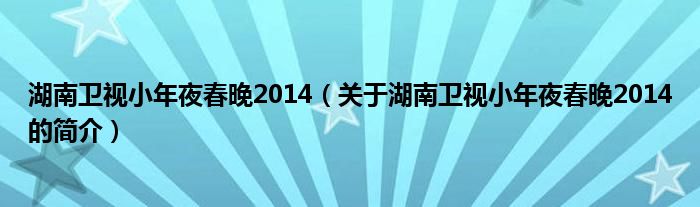 本文關于湖南衛視小年夜春晚2014的簡介就講解完畢,希望對大家有所幫助。