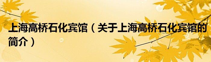 本文關于上海高橋石化賓館的簡介就講解完畢,希望對大家有所幫助。