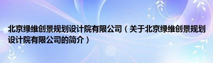 大家好,北京綠維創景規劃設計院有限公司,關于北京綠維創景規劃設計院有限公司的簡介很多人還不知道,現在讓我們一起來看看吧!