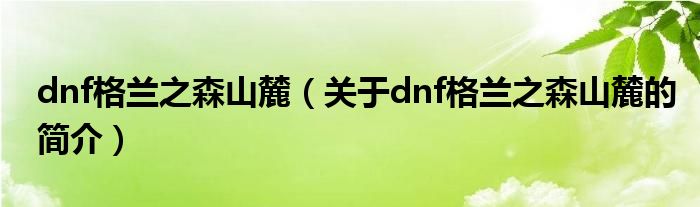 本文關于dnf格蘭之森山麓的簡介就講解完畢,希望對大家有所幫助。
