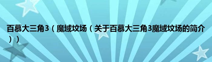 本文關(guān)于百慕大三角3 魔域墳場的簡介就講解完畢,希望對大家有所幫助。
