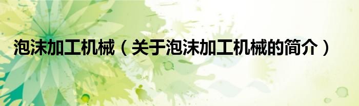 本文關于泡沫加工機械的簡介就講解完畢,希望對大家有所幫助。