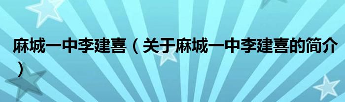 大家好,麻城一中李建喜,關于麻城一中李建喜的簡介很多人還不知道,現在讓我們一起來看看吧!