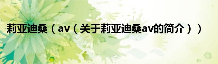 本文關于莉亞迪桑 av的簡介就講解完畢,希望對大家有所幫助。
