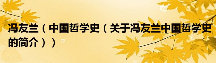 本文關于馮友蘭 中國哲學史的簡介就講解完畢,希望對大家有所幫助。