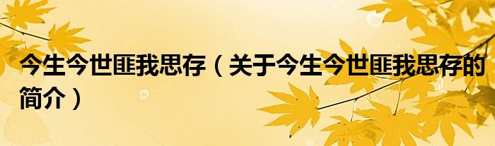 本文關于今生今世匪我思存的簡介就講解完畢,希望對大家有所幫助。