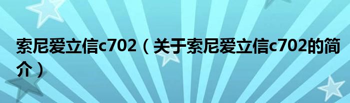 大家好,索尼愛立信c702,關于索尼愛立信c702的簡介很多人還不知道,現在讓我們一起來看看吧!