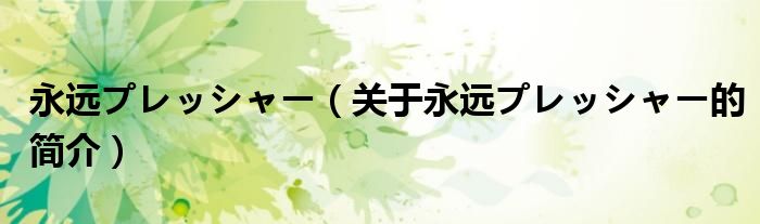 本文關于永遠プレッシャー的簡介就講解完畢,希望對大家有所幫助。