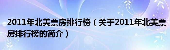 本文關于2011年北美票房排行榜的簡介就講解完畢,希望對大家有所幫助。