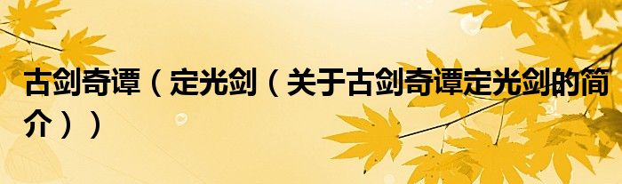 本文關于古劍奇譚 定光劍的簡介就講解完畢,希望對大家有所幫助。