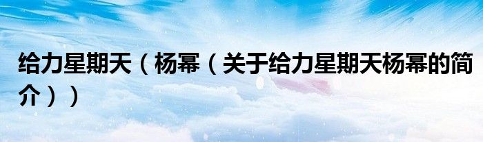 大家好,給力星期天 楊冪,關于給力星期天 楊冪的簡介很多人還不知道,現在讓我們一起來看看吧!