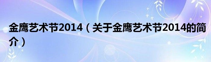 本文關(guān)于金鷹藝術(shù)節(jié)2014的簡介就講解完畢,希望對大家有所幫助。