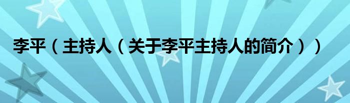 大家好,李平 主持人,關于李平 主持人的簡介很多人還不知道,現在讓我們一起來看看吧!