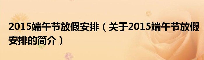 本文關于2015端午節放假安排的簡介就講解完畢,希望對大家有所幫助。