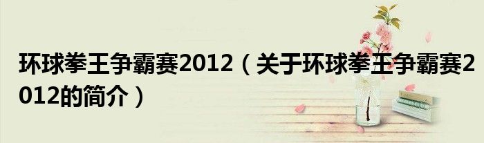 大家好,環球拳王爭霸賽2012,關于環球拳王爭霸賽2012的簡介很多人還不知道,現在讓我們一起來看看吧!