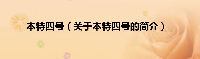 本文關(guān)于本特四號(hào)的簡(jiǎn)介就講解完畢,希望對(duì)大家有所幫助。