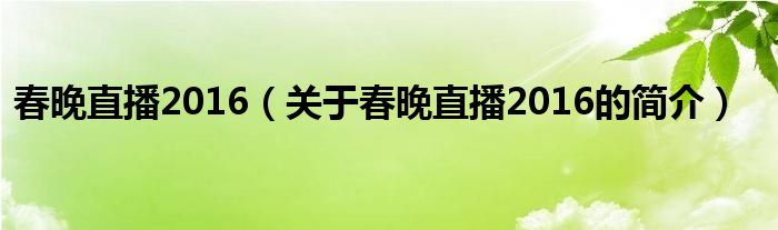 本文關于春晚直播2016的簡介就講解完畢,希望對大家有所幫助。