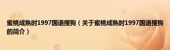 本文關于蜜桃成熟時1997國語搜狗的簡介就講解完畢,希望對大家有所幫助。