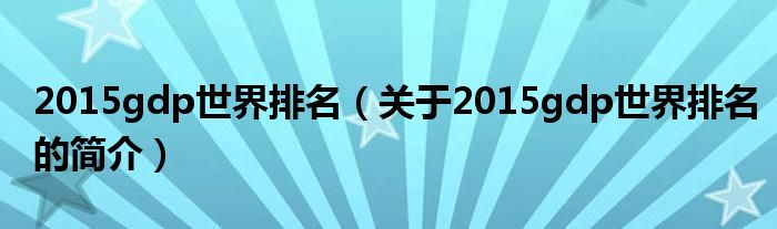 本文關于2015gdp世界排名的簡介就講解完畢,希望對大家有所幫助。