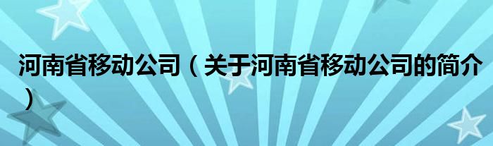 本文關于河南省移動公司的簡介就講解完畢,希望對大家有所幫助。