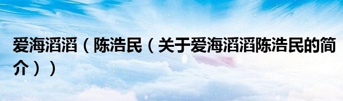 大家好,愛海滔滔 陳浩民,關(guān)于愛海滔滔 陳浩民的簡介很多人還不知道,現(xiàn)在讓我們一起來看看吧!