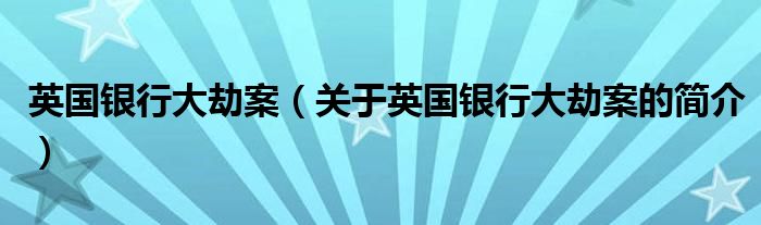 大家好,英國銀行大劫案,關(guān)于英國銀行大劫案的簡介很多人還不知道,現(xiàn)在讓我們一起來看看吧!