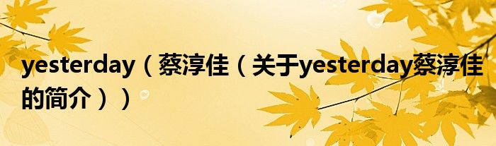 本文關(guān)于yesterday 蔡淳佳的簡介就講解完畢,希望對大家有所幫助。