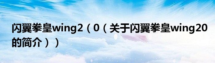 本文關于閃翼拳皇wing2 0的簡介就講解完畢,希望對大家有所幫助。
